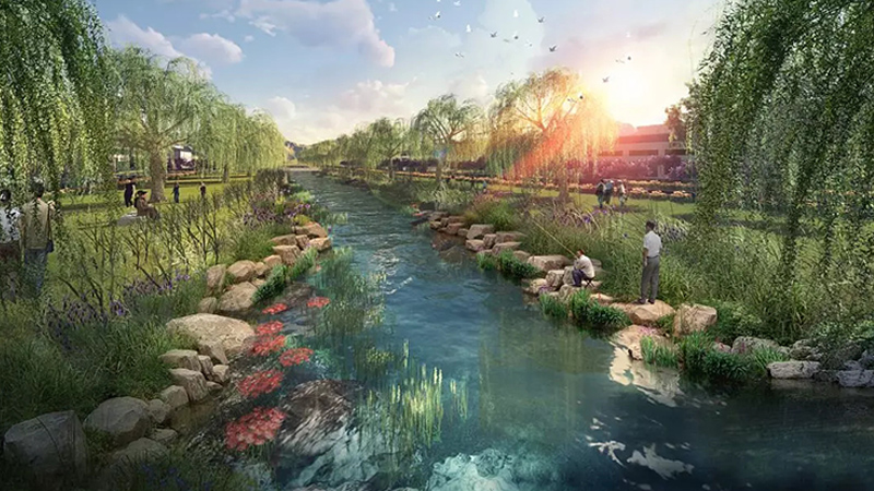 云梦县西大渠18.8KM河道综合整治,工程涵盖:截污县城管网完善、乡村污水收集处理、河道清淤、 河道生态修复、护坡、滨水景观、步道及绿化。