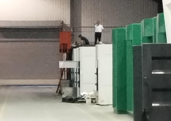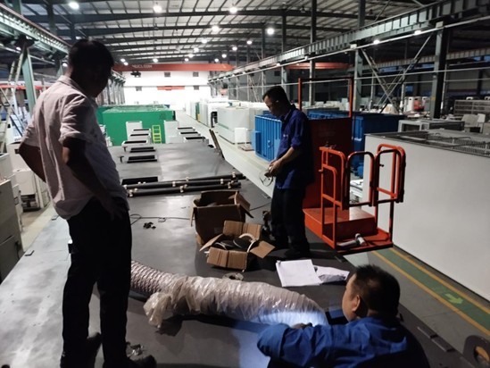 车间接到图纸后,马不停蹄的运作起来,加工的这段时间,天气炎热,室外高达四十多度,车间内通风欠佳,为了追赶进度,丝毫没有怠慢。设备油漆未完全干燥,刺激性气味浓度很高,团队成员不惧困难,直接钻入设备中,一边用抽风机抽气,一边指导安装管件,最后调试电气系统,连续几天干到深夜,团队领导更是全程坚守在一线。
