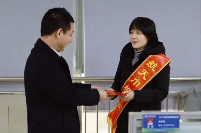 3月6日,航天凯天副总裁、工会主席易世涛,工会副主席徐小英将“航天巾帼标兵”荣誉证书送到刘华工作岗位上,对刘华获奖表示祝贺,鼓励她继续为公司“三化”改革贡献力量。