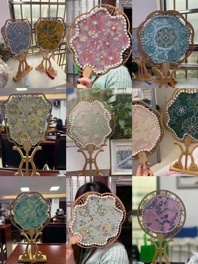 团扇制作环节,团员青年在专业老师指导下,运用宋锦面料、珍珠等材料精心创作。大家或凸显宋锦古朴雅致,或融入现代审美,制作中还交流技巧、分享思路。“亲手制作的不仅是一把团扇,更是对中华优秀传统文化的致敬。”不少团员青年表示,这次体验让他们真切感受到了非遗的独特魅力,也进一步增强了文化自信与自豪感。