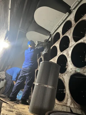 然而,实际的安装现场状况远比预想中更为恶劣。现场粉尘漫天飞舞,如同浓雾般笼罩着一切,光线昏暗得如同黑夜,空间狭小逼仄,行动处处受限。老旧的非标设备更是问题重重,这使得安装难度上升。但紧迫的安装时间容不得丝毫的延误,因为每一秒的耽搁都可能影响环保设施的启用,进而阻碍客户恢复生产。面对这重重困难,突击队员们的眼神中透露出一种无声却坚定的默契 ——“硬着头皮顶上去”。