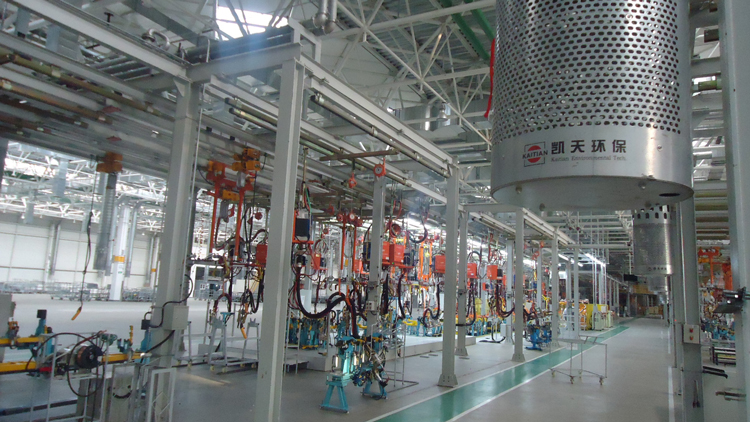 一汽吉林汽车有限公司是一汽小型汽车的主要生产基地,其白车身焊接车间、总装车间存在异味大、烟尘重、冬季温度低等一系列问题,航天航天凯天整体厂房控温除尘技术很好地解决了这些问题。并且采用整体厂房冬季供暖模式替代了传统的采暖器,室内升温更快采暖费用降低了30%以上。航天凯天环保在汽车制造领域成功实施了超过100个治理工程,涵盖一汽、二汽、上汽、广汽、长城等众多汽车制造企业。