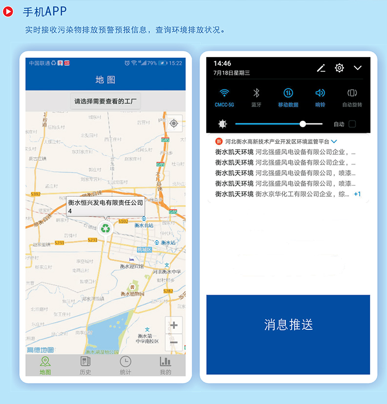 衡水高新区环境监管平台是以监测为手段,通过对实时数据的处理、分析实现预警功能。并通过对园区内废气、废水、危废情况进行实时显示、数据存储,建设信息资源整合共享机制和有关信息设施,让园区管理人员能够快速反应。