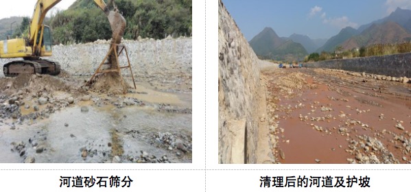 主要建设内容:对砷超标河段内的河道沉积物进行筛分,废石运送至废石堆场或码砌河道两侧,其中废石堆场处置量约为1.27万m3,废石码砌量约为8.13万m3。尾砂运输填埋至新建填埋场填埋处置,填埋场底部采取HDPE膜防渗处理,封场采用HDPE膜+复合排水网格+种植土,填埋场顶部进行绿化,已清运的河道进行浆砌片石护坡处理。