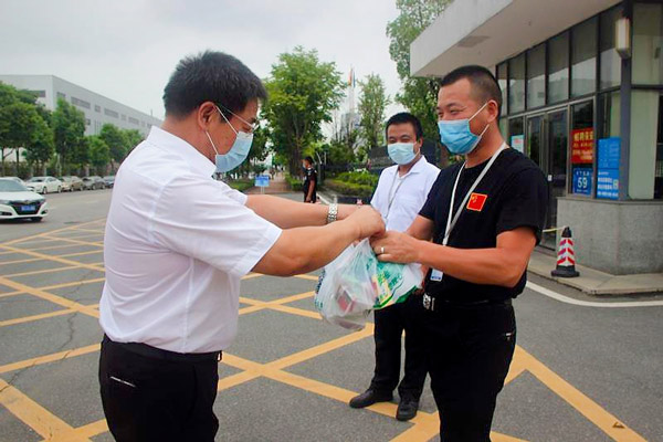 8月10日下午,航天凯天环保工会和安全质量部在园区组织开展“战疫情、保安全、促生产”送清凉活动,公司党总支副书记、工会主席刘素琴、高级副总裁王宏来到园区南门,为正在参与防疫工作的员工送上防疫用品和防暑降温物资大礼包,为防疫战士们送去一份“凉爽”的同时,也送上一份“安心”。