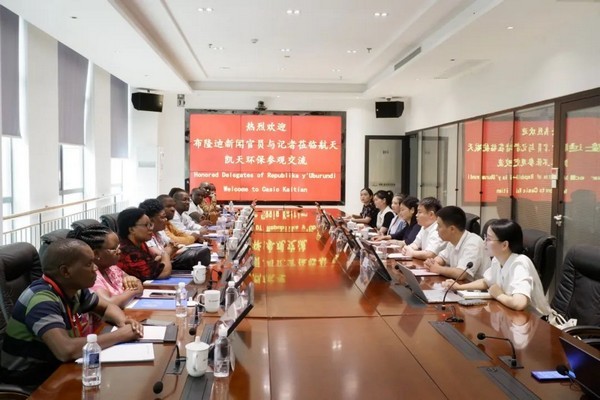 随后媒体团一行人在新闻发布中心进行交流座谈,喻春艳对其表示热烈欢迎,并表示航天凯天环保积极响应国家绿色“一带一路”倡议,多年来不断深化与非洲各国的合作,为非洲的环境治理作出了重要贡献。航天凯天环保与非洲渊源颇深,早在2019年,首届中国-非洲经贸博览会时期,尼日利亚阿夸伊博姆州代表团前来航天凯天环保座谈交流,希望以此次布隆迪国家媒体团考察交流活动为契机,增强彼此互信互助,推动双方合作共赢。并接受了湖南卫视的专访介绍。