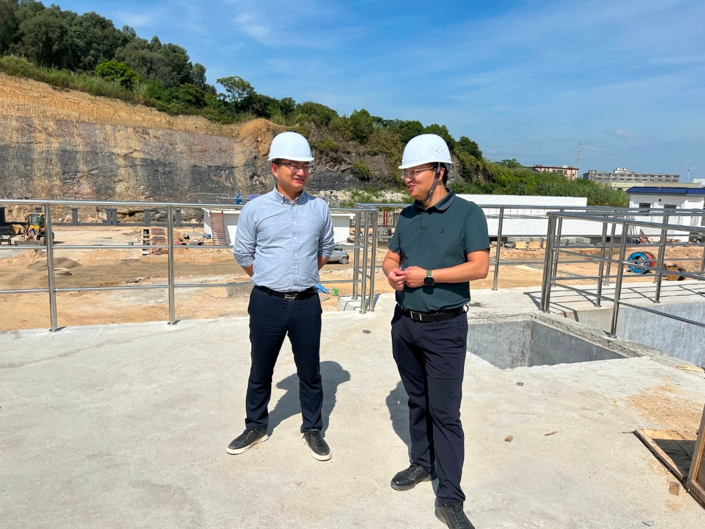 会前,郑自儒深入普宁污水处理项目现场,检查项目安全管理工作,详细了解项目运营情况,并与一线技术人员交流沟通。
