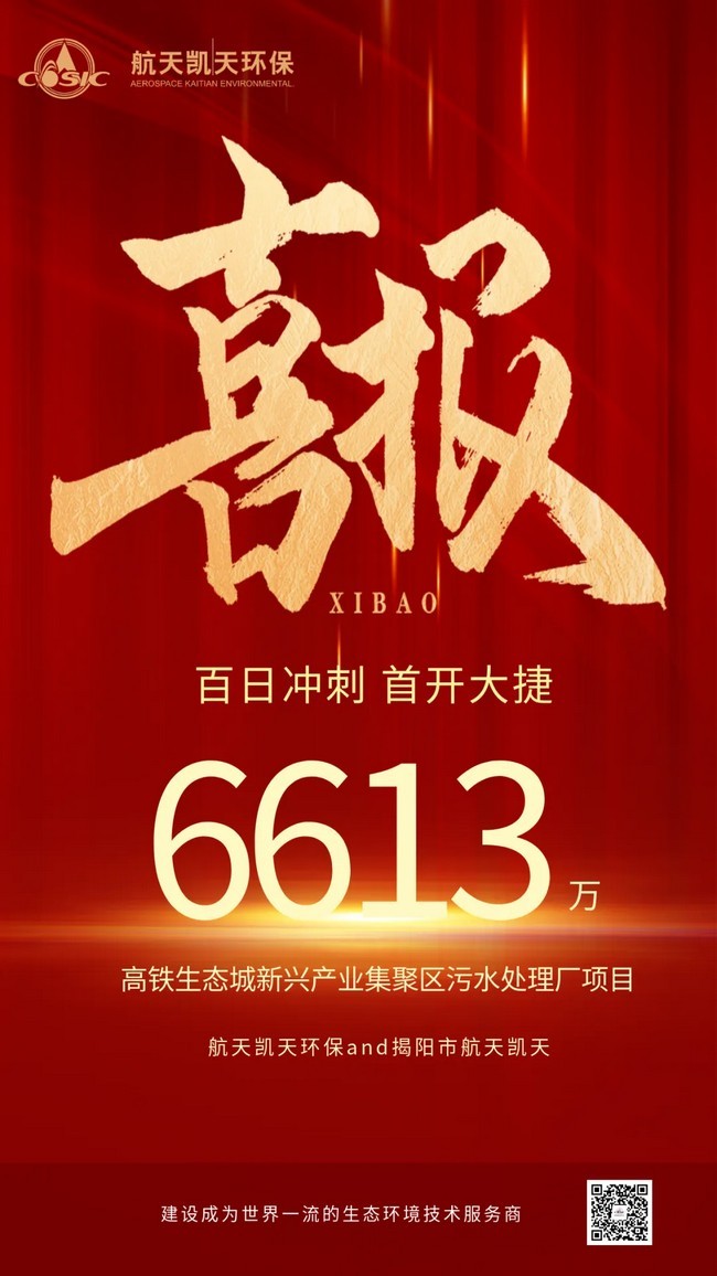 丹桂飘香好时节,百日冲刺捷报传!10月8日,航天凯天环保科技股份有限公司和揭阳市航天凯天生态治理有限公司联合体中标奉节县“高铁生态城新兴产业集聚区污水处理厂EPC总承包项目”,中标金额6613.81万元,率先实现航天凯天环保“冲刺100天”专项活动营销订单突破。该项目的主要建设内容包含污水、污泥处理工艺、建构筑物结构工程、建筑工程、管道及设备安装工程、电气与自控仪表工程、厂区给排水及消防工程等,近期规模为5000t/d,远期规模为10000t/d,出水标准为一级A。项目建成后,将大量减少对朱衣河及长江的污染物排放,极大地改善奉节县高铁生态城和长江奉节段的生态环境,促进奉节县环境与经济协调发展。